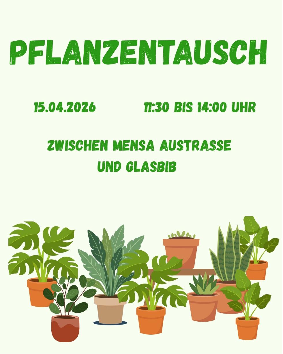 Ihr habt Lust auf ein bisschen frisches Grün in euren 4 Wänden oder wollt ein paar eurer Pflanzen in neue Hände geben? Dann kommt am Mittwoch, 15.04. von 11:30-14 Uhr zu unserem Pflanzentausch auf den Stufen vor der Mensa Austraße🪴 Lasst Pflanzen oder Setzlinge da, tauscht sie gegen neue, oder nehmt auch einfach so was […]